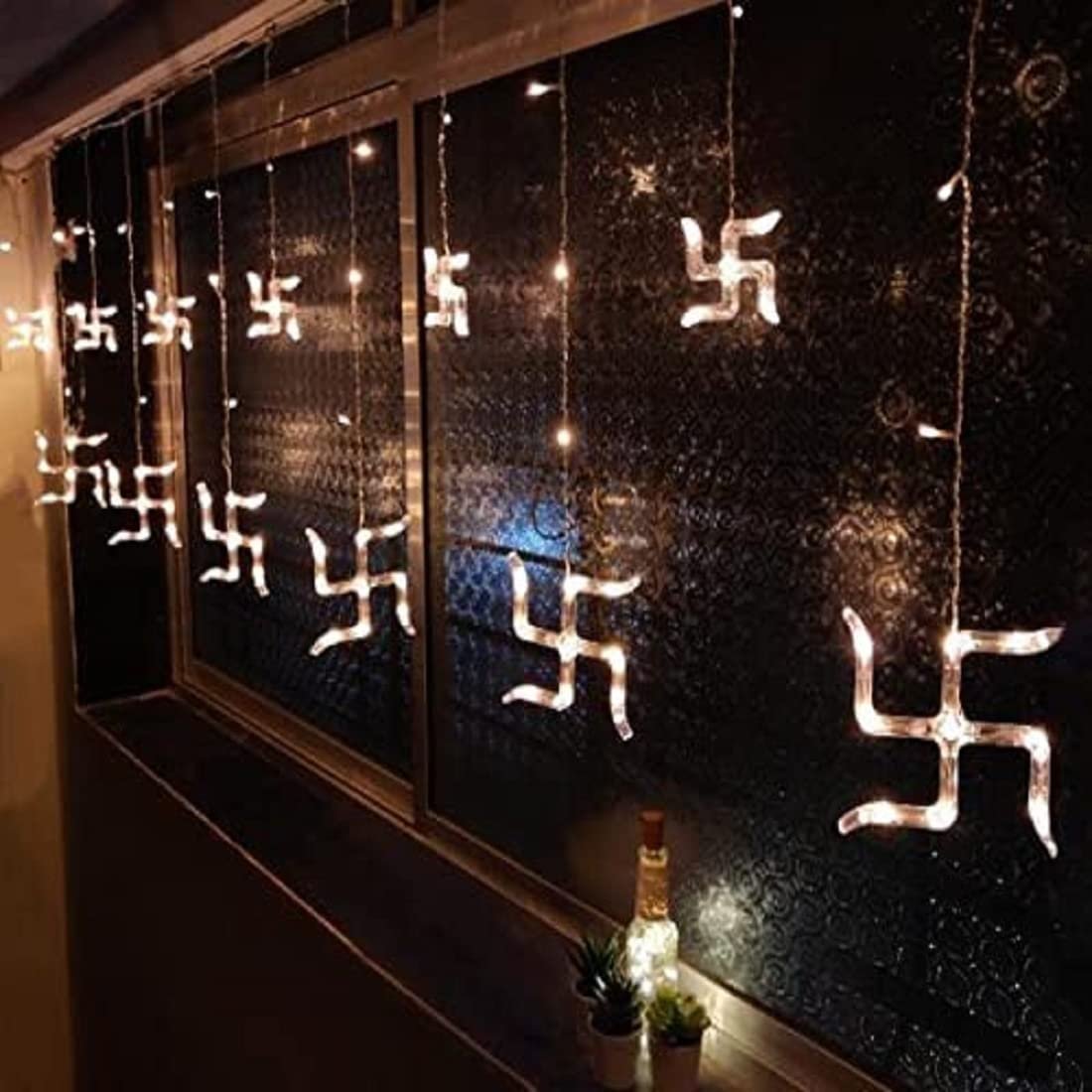 Vedini Warm White Swastik Curtain Light, String Lights with Pack of 12 Hanging Swastik and Om 8 Flashing Modes for Diwali Decoration